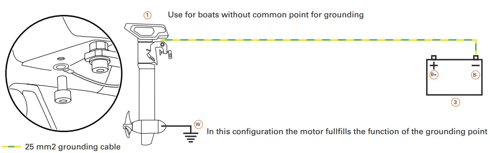 | W | Torqeedo system ground | min. 25 mm2, not included | |