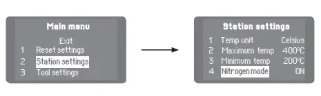 Once the MN (Nitrogen Regulator Module) has been connected to the Control Unit, enter into the Station Settings menu and switch on the Nitrogen Mode.
