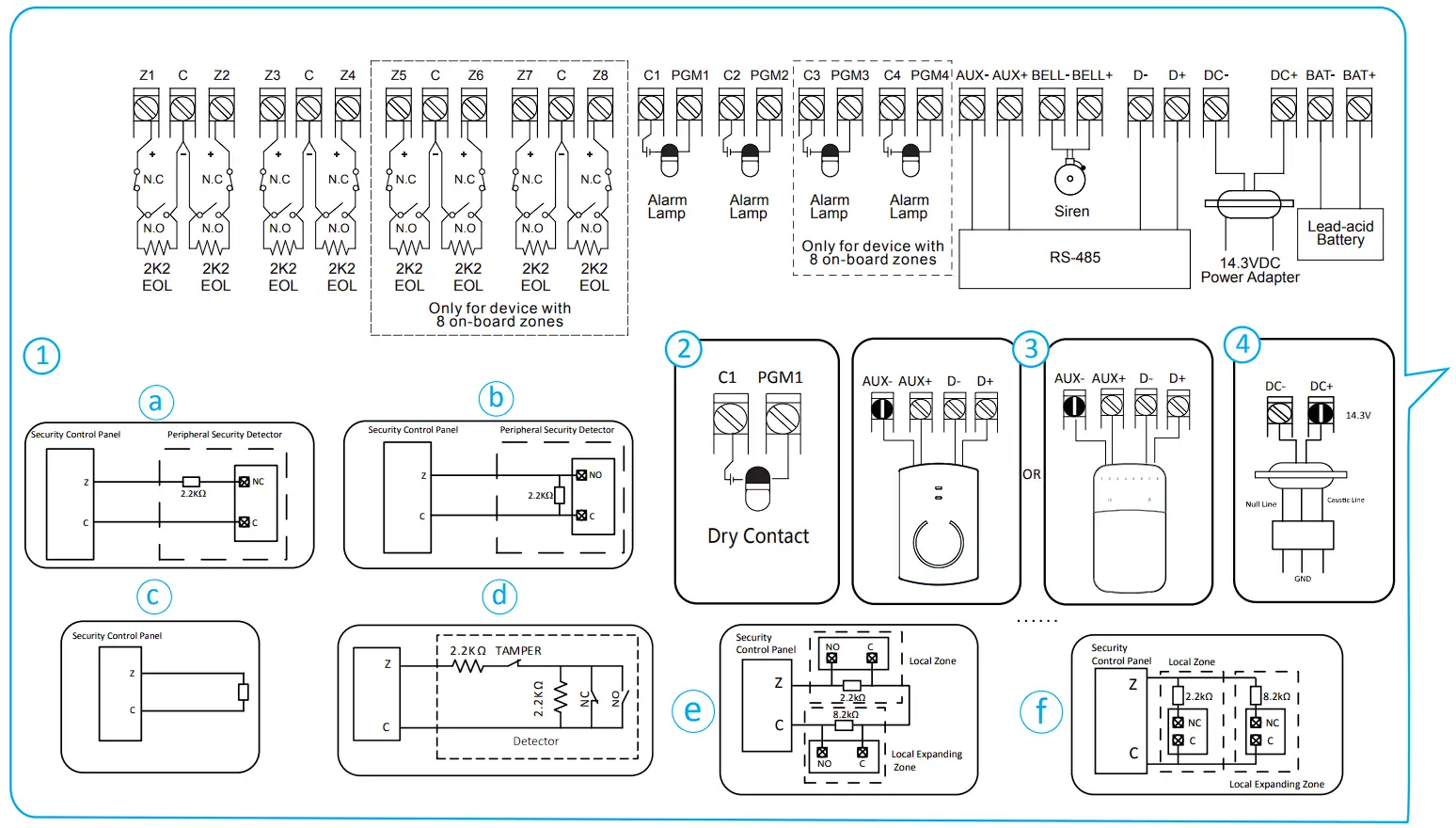3. RS-485 Wiring: Wireless Receiver , keypad, etc,.