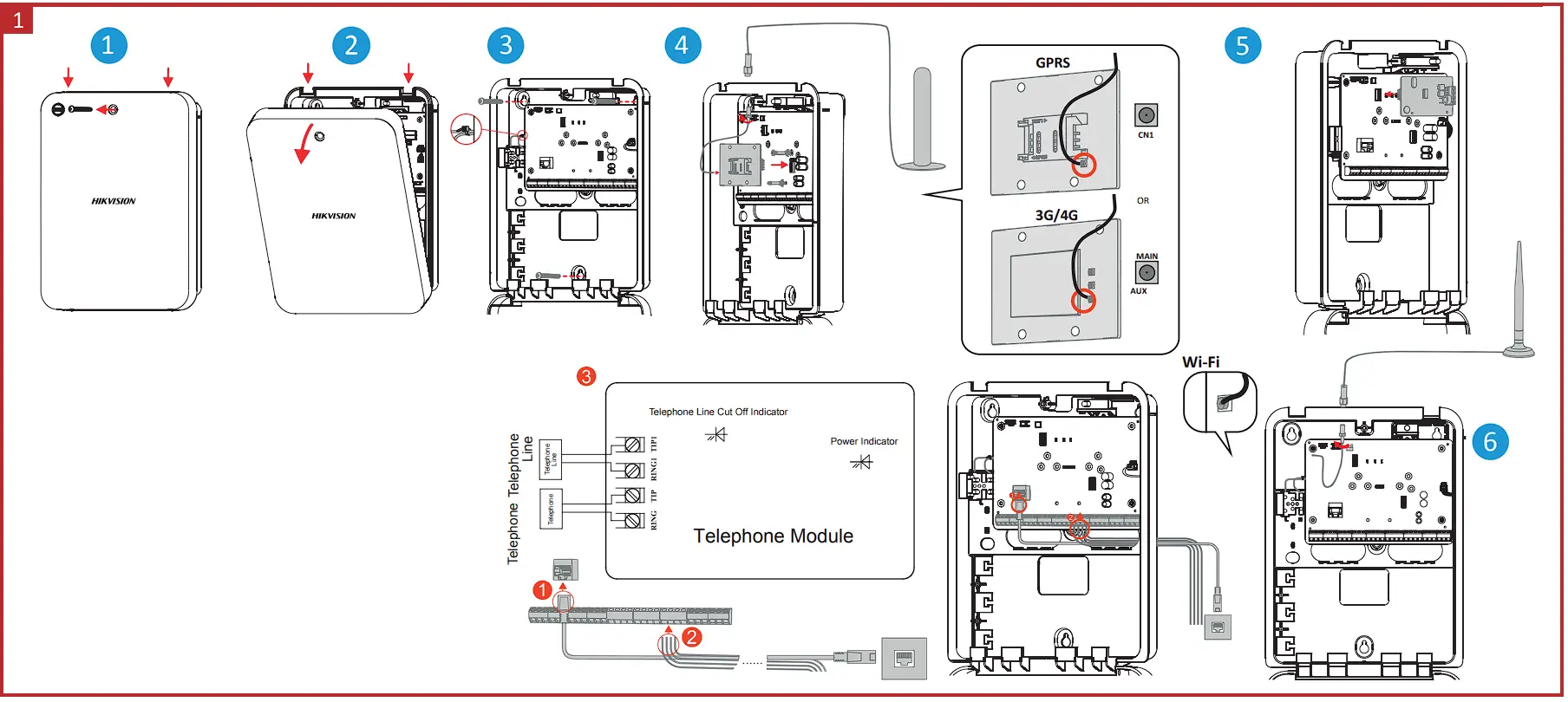 ❸ Telephone Module Wiring - Close and lock the case of the control panel.