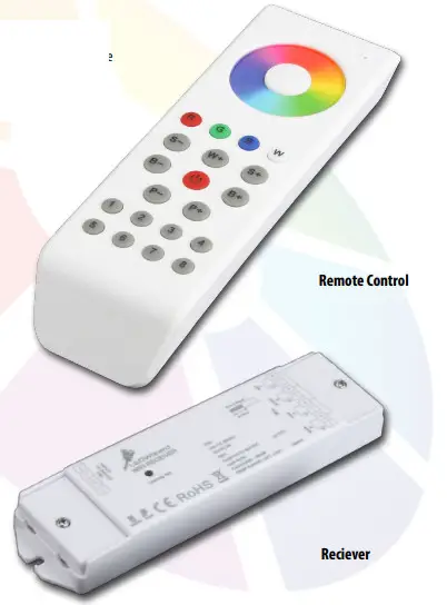 The 8 Zone RGB Remote Control and matching receivers can control up to 8 four-channel RGB-W zones as a group or independently for zones running from 12V to 36V DC. After the installation is complete, you can change the colors, play pre-programmed color-changing programs, or change brightness levels on each LED zone independently from 0% to 100% brightness.