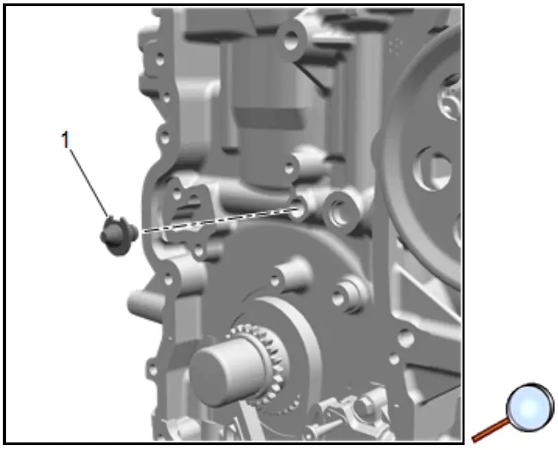 - Remove the timing chain oil nozzle (1).
