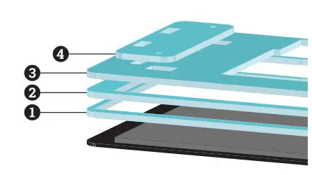 Place your Raspberry Pi 7″ Touchscreen Display face down on a soft non-scratch surface and lay frames (1, 2, and 3) on top of it.
