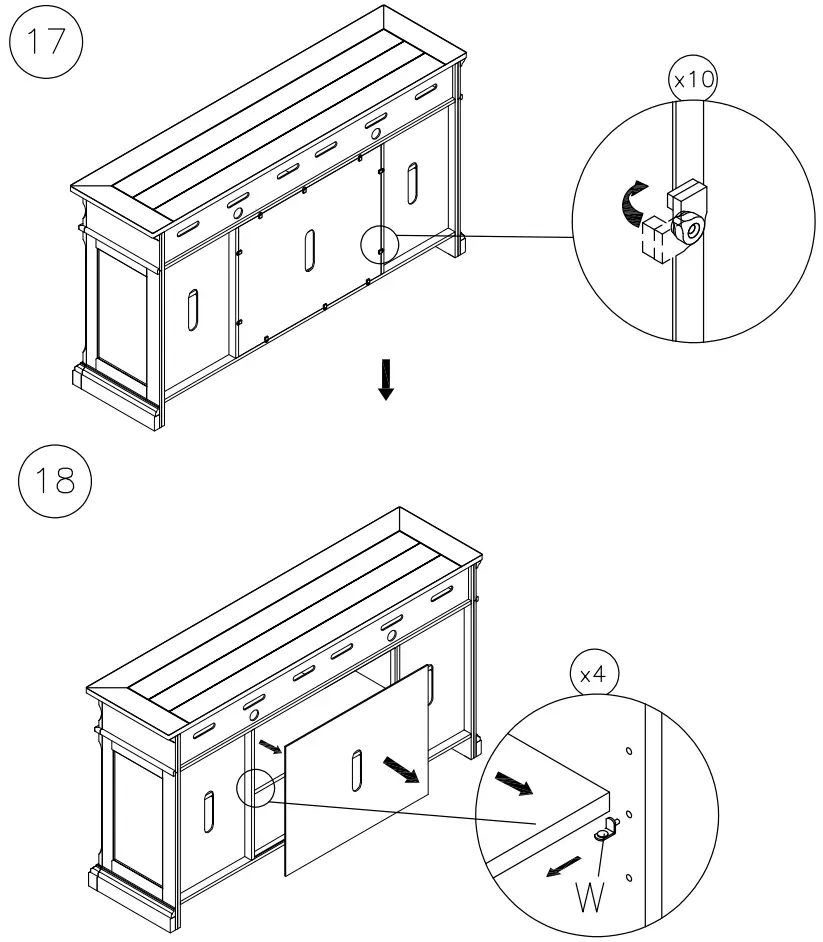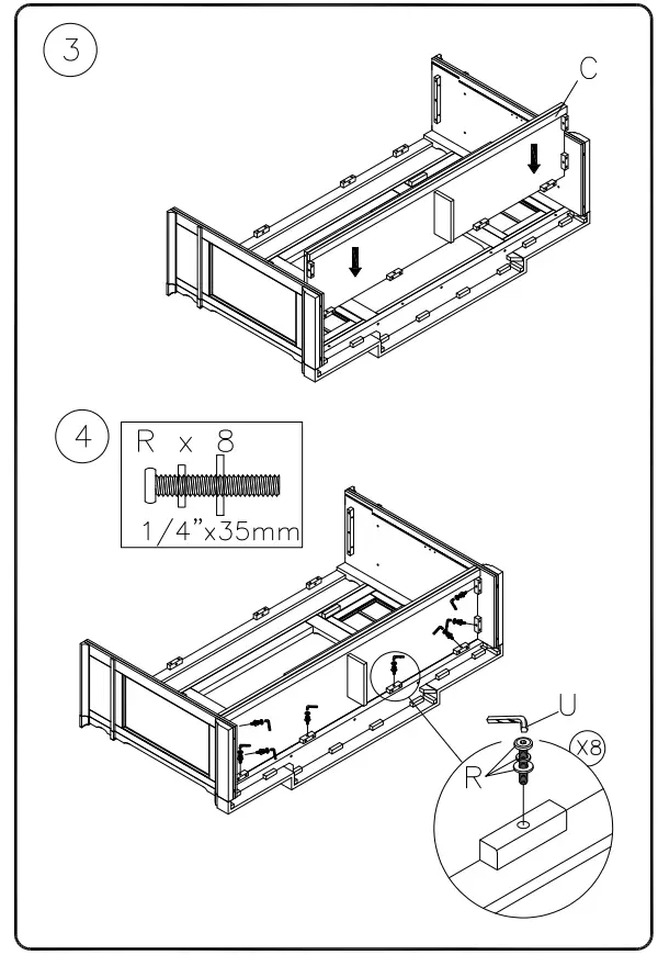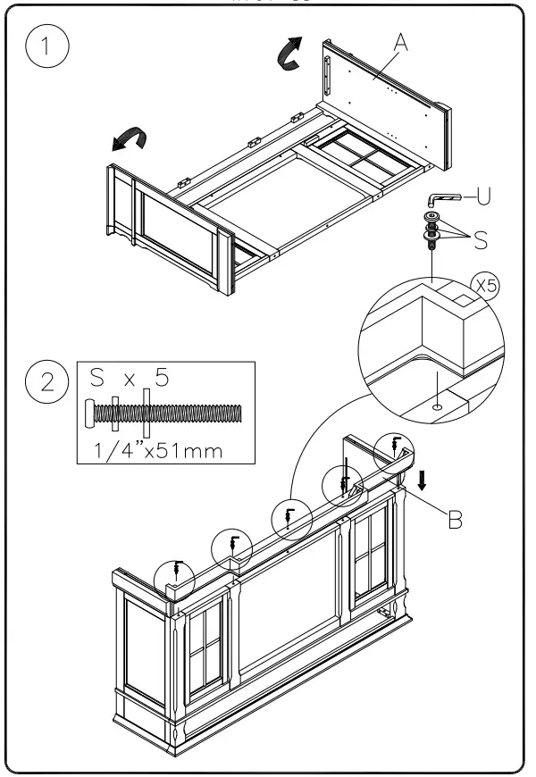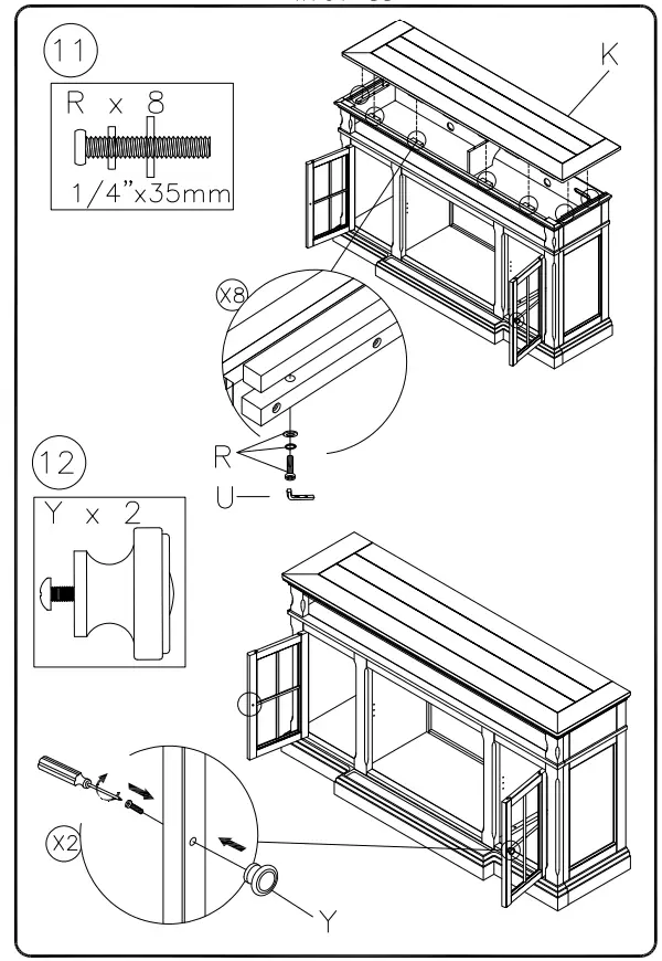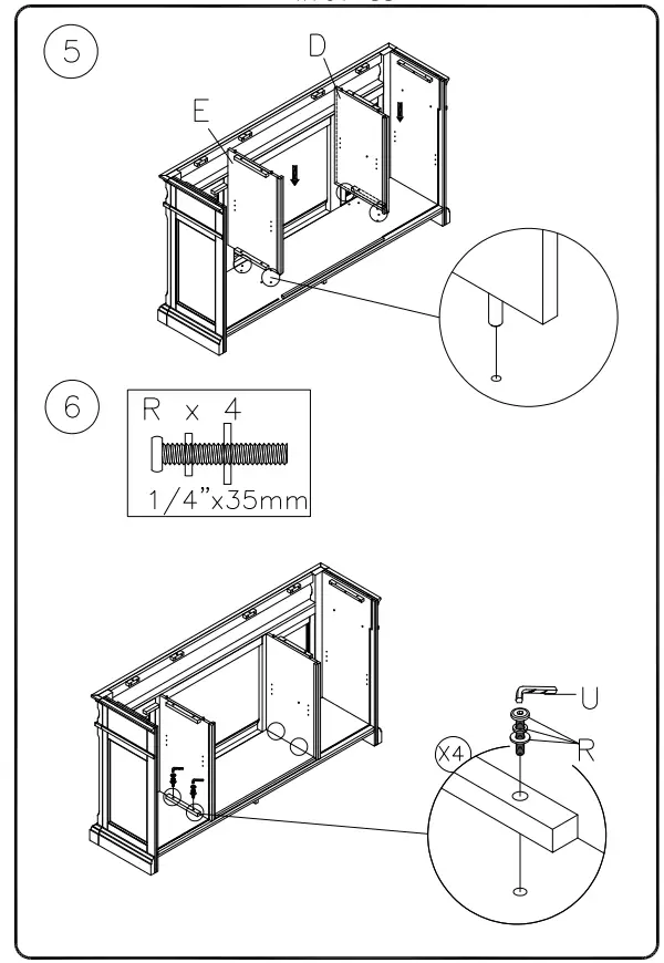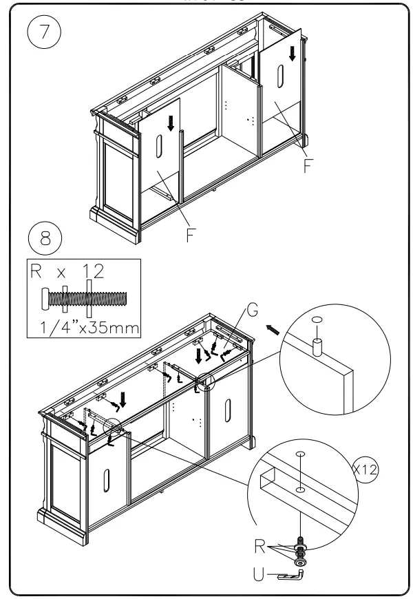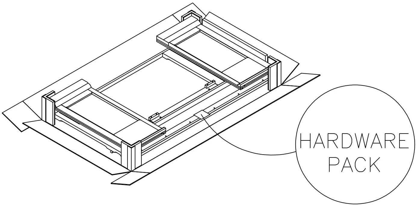 NOTE: HARDWARE ARE STORED BACKSIDE OF FRONT FRAME