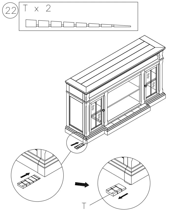 NOTE: IF THE UNIT IS PLACED ON AN UNLEVEL SURFACE, PLACE A LEVELER UNDERNEATH ONE FOOT UNTIL THE UNIT IS LEVEL. BREAK OFF ANY PROTRUDING SEGMENTS.