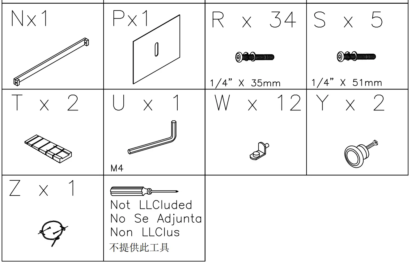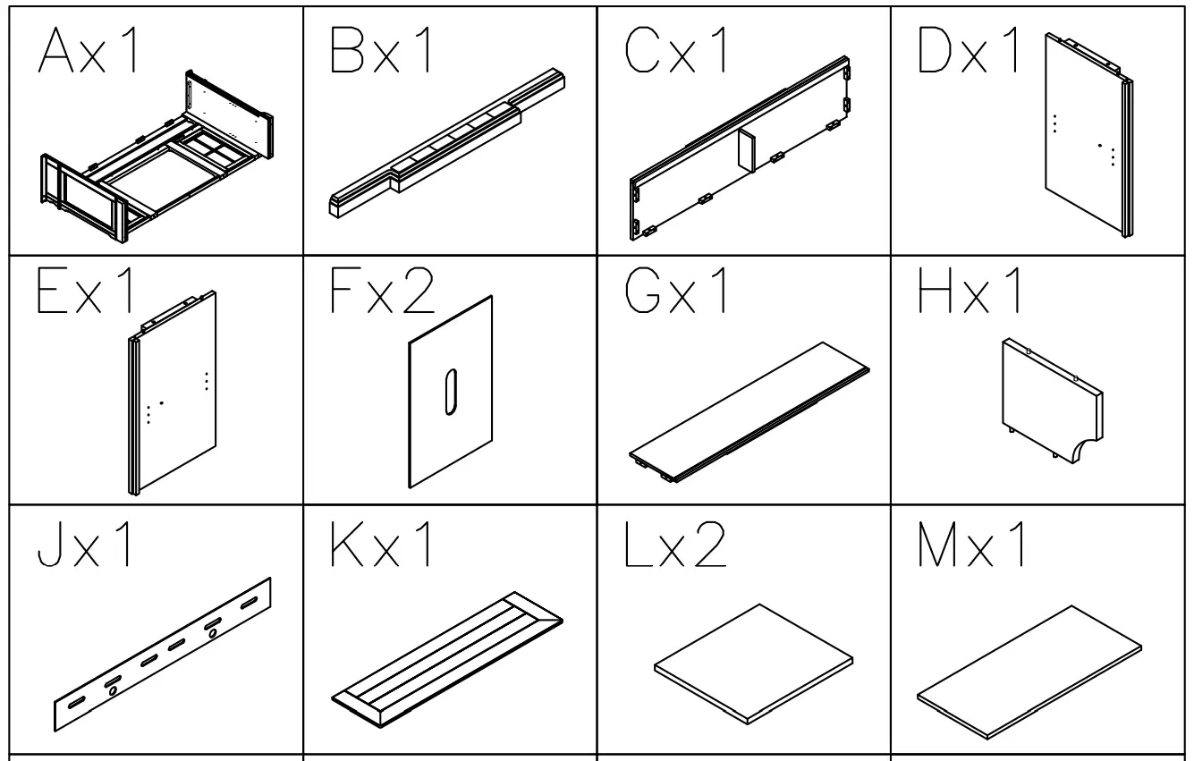 NOTE: ASSEMBLY INSTRUCTION FOR MULTIPLE UNITS, THE PARTS/LABEL INDEX ARE SEPARATED FOR DIFFERENT UNITS THE PARTS ARE LOCATED INSIDE THE BOX AS BELOW