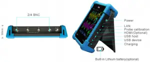 | Standard Accessories | Tablet Oscilloscope! Book Mini Localized power cord Power adapter Probes (quantity depends on the oscilloscope channel) BNC cap | See model MS-Cable MS-PA-1205 MS-PR-P1 30A MS-Cap |