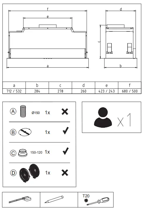 • It is possible that with the installation of carbon filters, a reduction in the extraction flow can be observed in the hood.