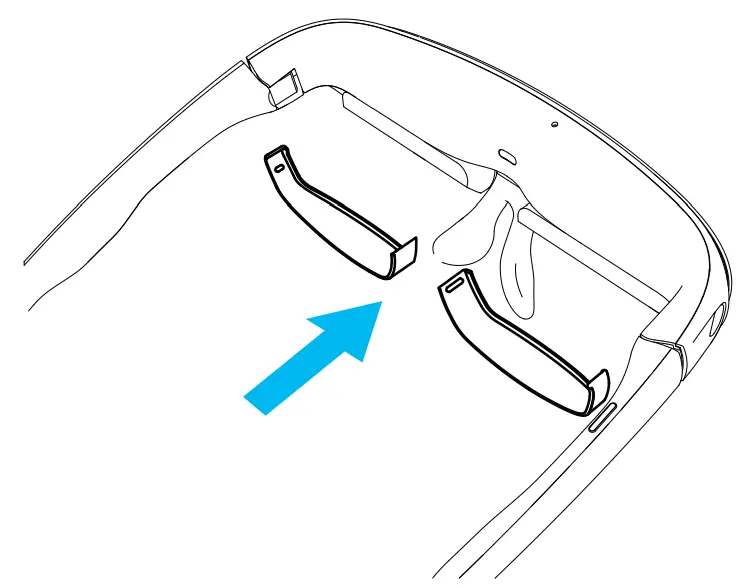 - Adjust the nose pad to a comfortable position which allows you to see the projected screen in the middle of your view.