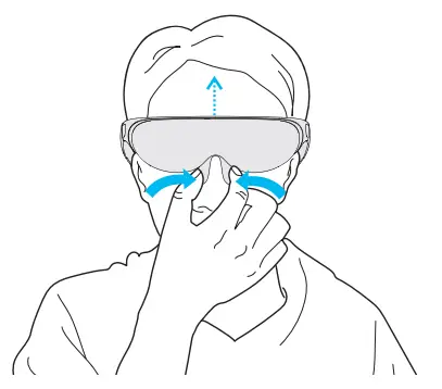 - After wearing the device, find the diopter adjustment knob by hand;