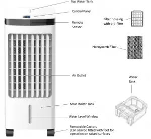 - Remove all packaging – while keeping the air cooler in a vertical position.