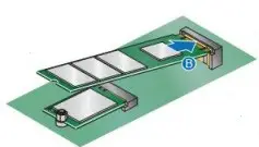 - Insert the bottom edge of the M.2 card into the connector (B).