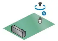 - Remove the small silver screw from the metal standoff on the motherboard (A).