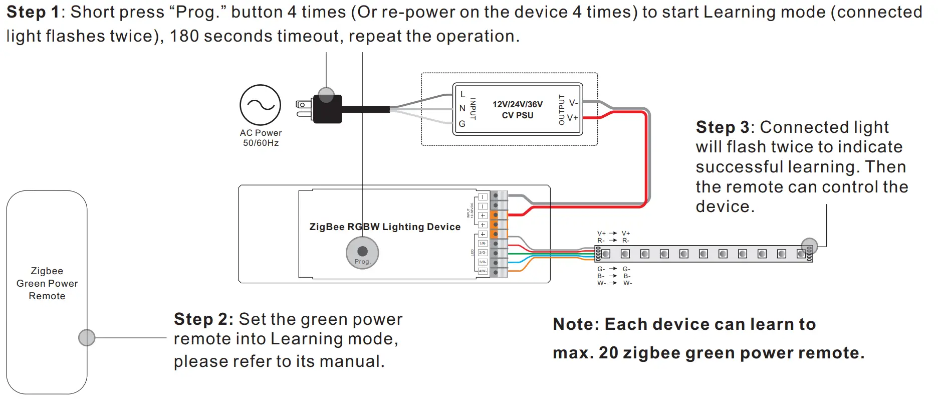 - Supports zigbee green power and can bind max. 20 zigbee green power remotes
