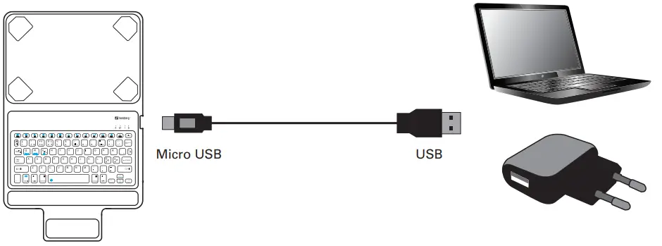 Go to settings, Bluetooth, search for “Sandberg Keyboard”