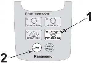 - Close the outer lid and press [Porridge/Soup] button. The cooking process will end after about 1 hour and 30 minutes.