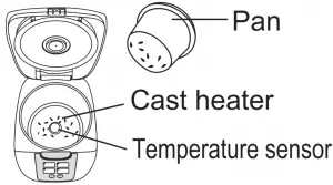| Please always clean the foreign objects such as rice on the pan, cast heater and temperature sensor.