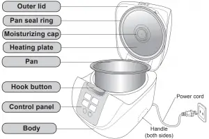 - To protect against electrical shock do not immerse cord, plugs, or Rice Cooker except the pan in water or other liquid.