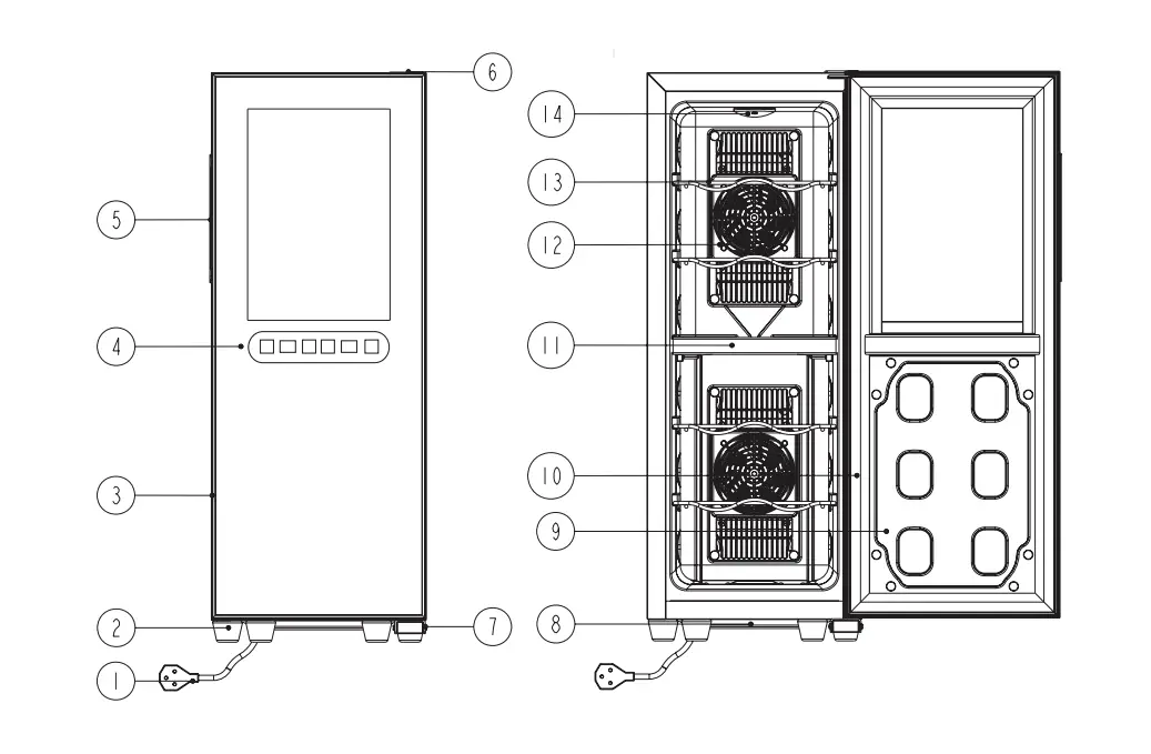 - Notice: This product has a continuous cooling system, which does not turn off the fan that blows air from the external environment. When the desired temperature, fan reduces the speed.