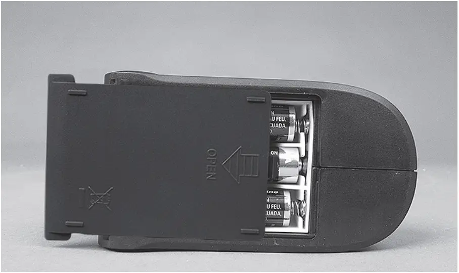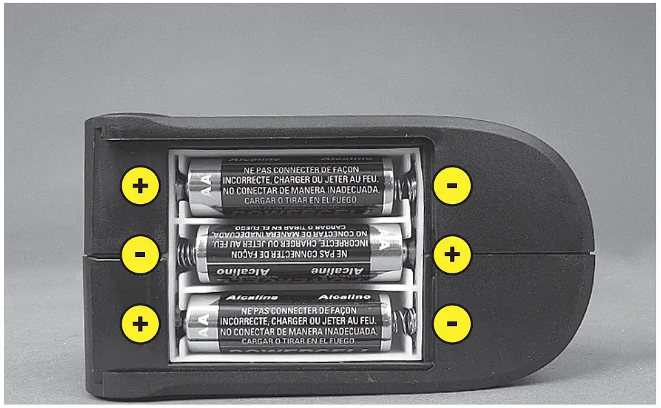 - Insert three batteries AA 1,5 V. Pay special attention to battery poles.