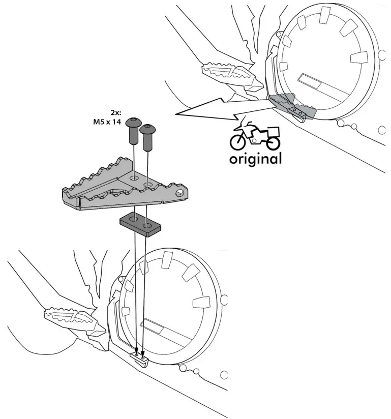 - If other original accessories or aftermarket accessories are used, ensure clearance, fitment and do not come into contact with other parts!