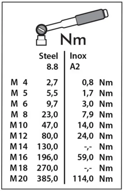 - Standard tightening torques in Nm for bolted connections with strength class 8.8. For special tightening torques refer to your specialist workshop!