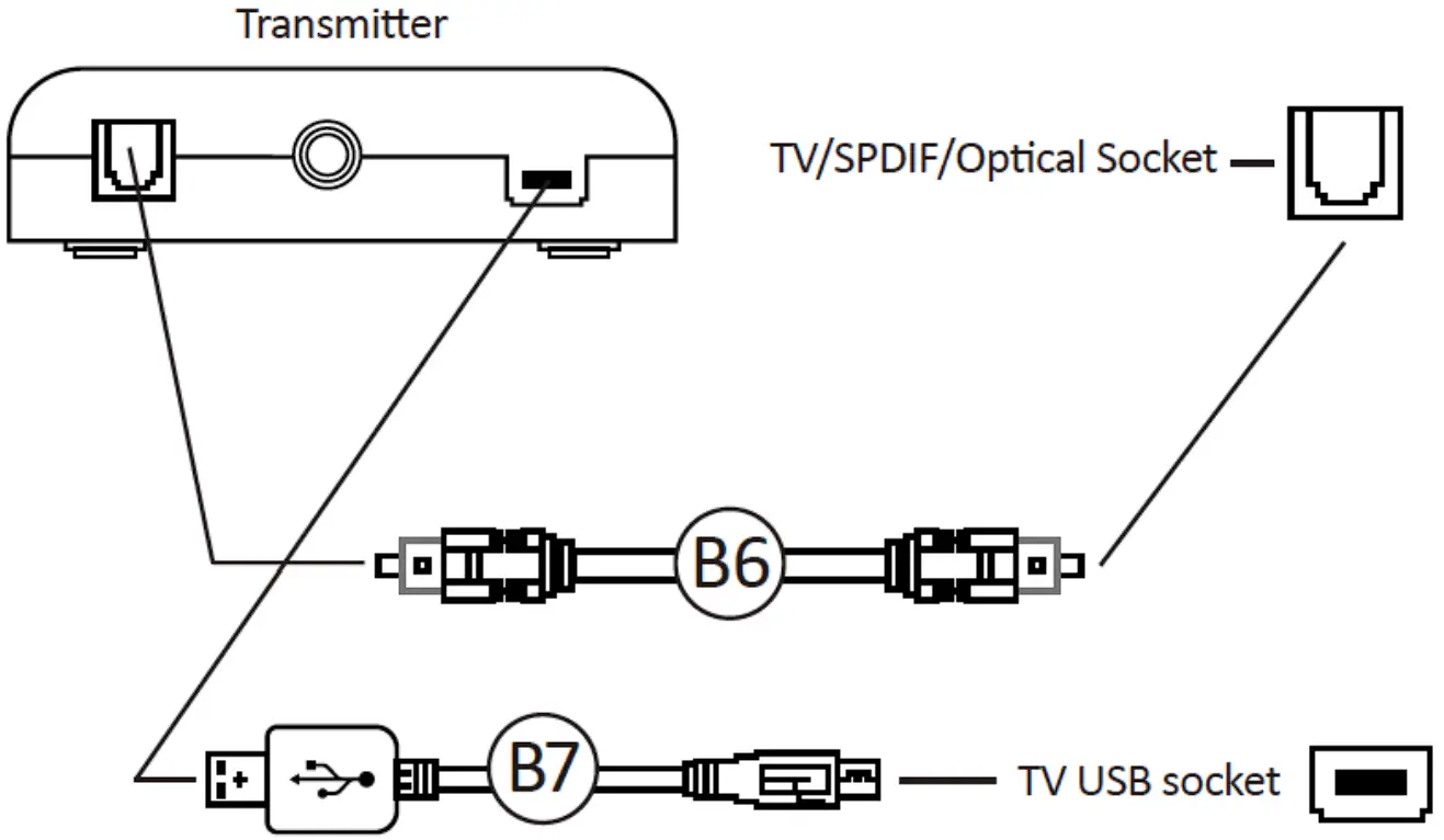 - Connect other end of B6 Optical Cable to the TV Optical socket.