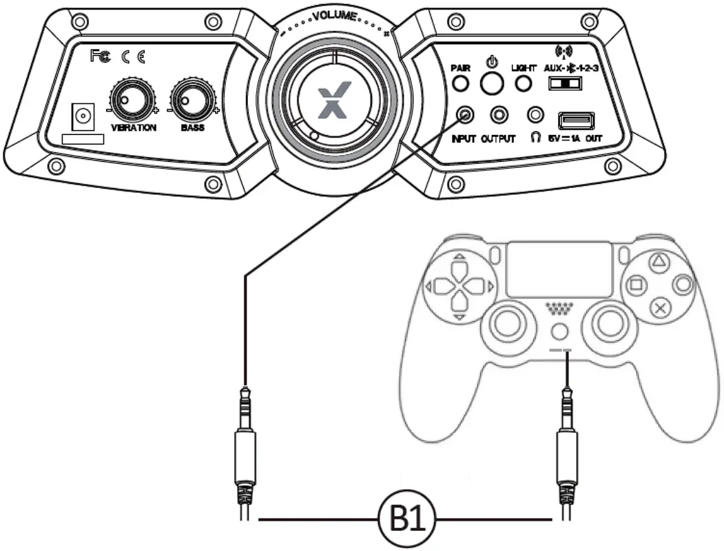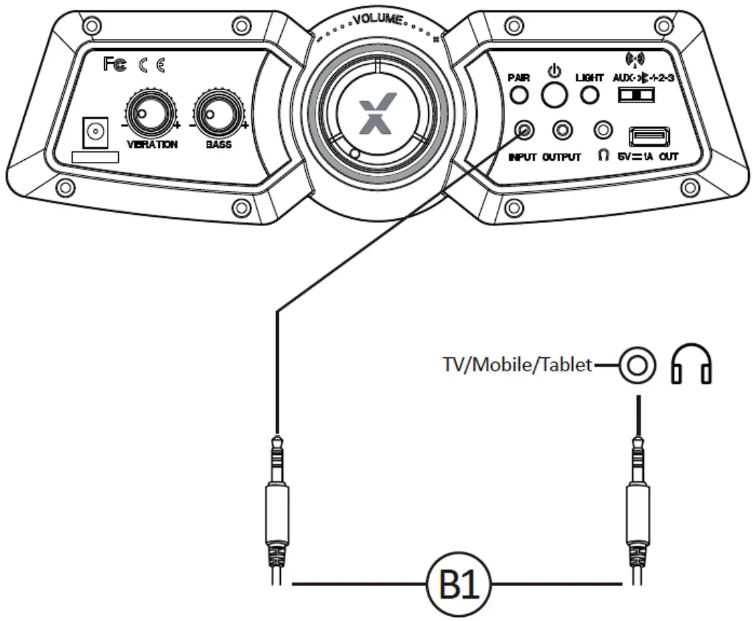- Connect B1 Cable to X Rocker control panel MP3 INPUT sockets.