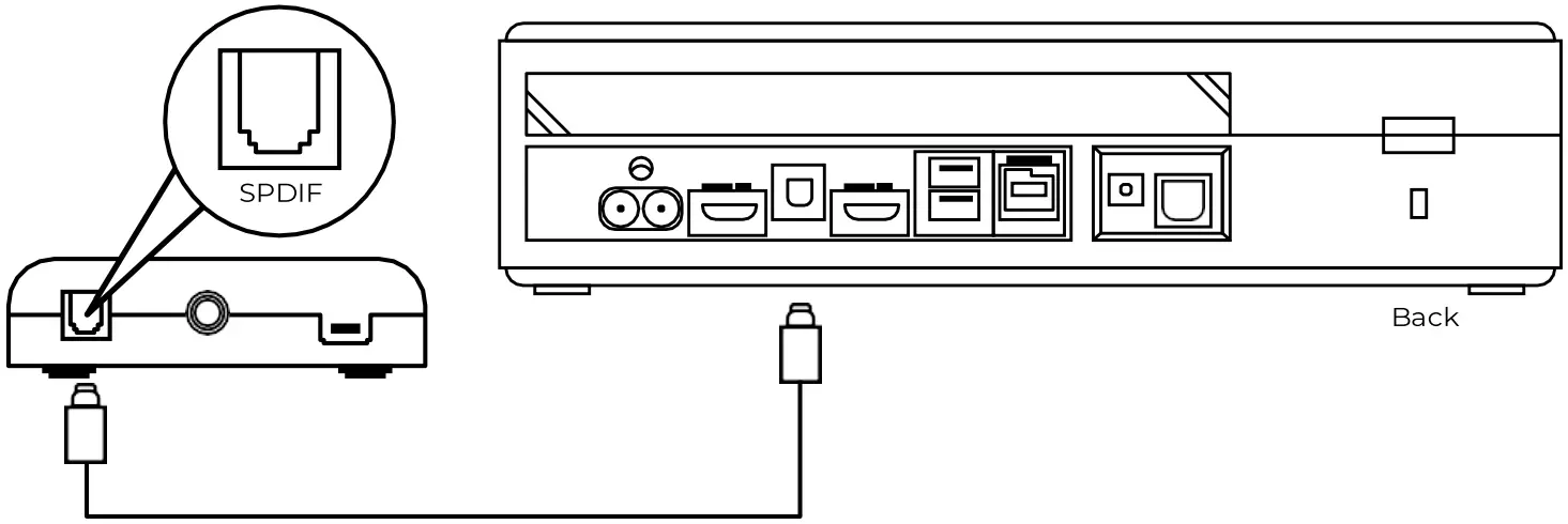 - Connect B6 Optical Cable to the B5 Wireless DAC transmitter’s SPDIF Port.