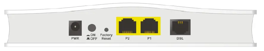 The type of the power adapter depends on the country that the modem will be installed. * The maximum power consumption is 4.8 Watt.