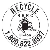 Upon removal, cover the battery pack’s terminals with heavy-duty adhesive tape. Do not attempt to destroy or disassemble the battery pack or remove any of its components. Lithium-ion batteries must be recycled or disposed of properly. Also, never touch both terminals with metal objects and/or body parts as a short circuit may result. Keep away from children. Failure to comply with these warnings could result in fire and/or serious injury.
