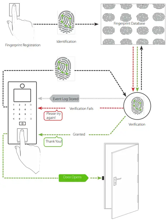 - In case an enrolled fingerprint cannot be used due to injury or the hand being full, it is recommended to enroll more than two fingers per user.