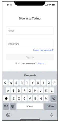 - Access the Turing Vision App sign-in screen.