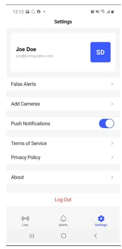 To access settings, see False Alerts lists, and log out, click Settings in the bottom right.