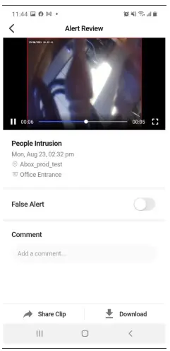 Download, share, add comments, or mark this as a false alert. If you mark it as a false alert, it no longer shows up on the Alert screen. You can find it under Settings.