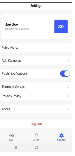 To sign out of your current Turing Vision session, click Log Out.