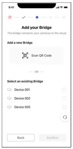 Click to select and connect to an existing bridge – or scan the bridge QR code to add a new bridge. Click Confirm.