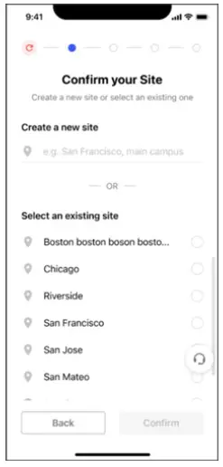 Click to select and connect to one or more existing sites – or enter location information to create a new site.
