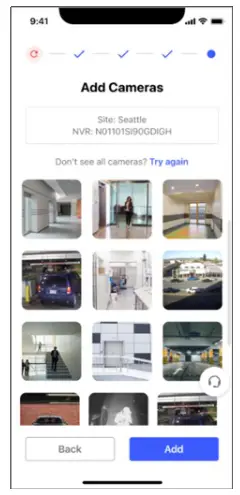 Don’t see all the cameras you expect? Troubleshoot problems, such as offline cameras and click Try Again to rerun the search – or click Back to search for a different combination of site and bridge.