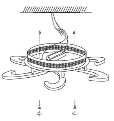 - The light chassis is fixed to the ceiling hanging plate, and then tightened with screws.