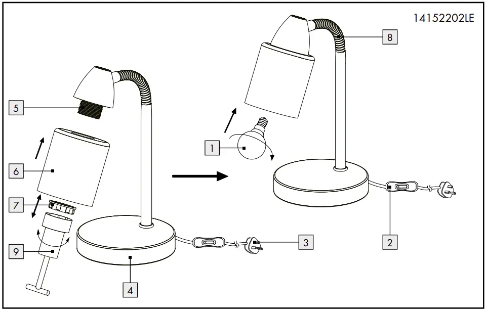, turning counter-clockwise. - Screw a new illuminant, clockwise into the lamp socket
