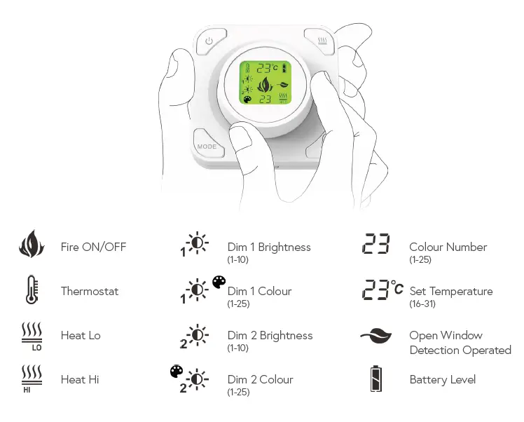 If the fire senses a significant drop in room temperature, it will revert to LO Heat (showing the eco leaf) to save energy. HI Heat must be reset by the user once the door or window is closed and the room isolated.