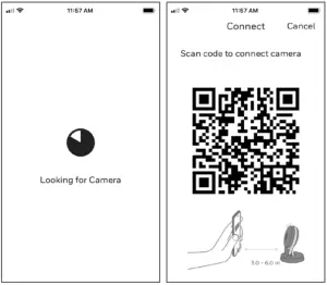 ● For more than one camera, the app will prompt you to select one camera at a time. Each camera has a unique MAC ID printed on the back. Use that ID to select the camera you want to connect. - A QR code will display in the app. To connect your camera to the app, hold the QR code approximately 3-6 inches (7-15 cm) from the camera lens.