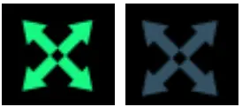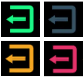 Each input and output channel has a virtual signal indicator. Five different states are represented: