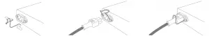Insert each clip by squeezing together the legs as shown in the first image below, aligning the pins with the through-holes on the IEC fixing posts one at a time, and then releasing.