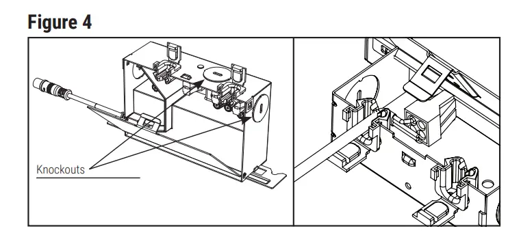 - Open the knockouts of the provided jbox and insert the supply wires into the jbox (Fig. 4) Connect the