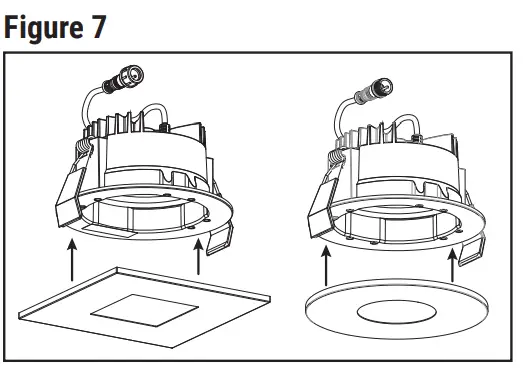- Place trim over flange of ML4 module already installed into housing. Magnets will secure and retain trim to LED module (Figure 7).