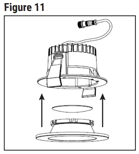 - Place trim (TL40R) having optic installed over flange of ML4 LED module already installed into housing. Magnets will secure and retain trim to ML4 LED module (Figure 11)
