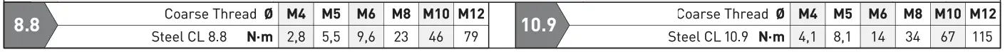 *** No torque specifications: Use the torque defined by vehicle manufacturer! The standard torque in this table can be used as long as it is within the vehicle manufacturer’s specifications.