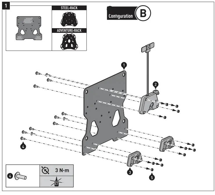 Configuration B for: Adapter plate for STEEL-RACK and ADVENTURE-RACK